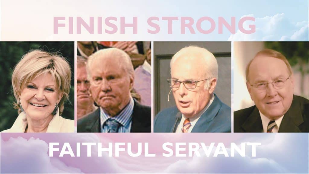 Will you be a faithful servant? Let’s learn to finish strong from the examples of Kay Arthur, Jimmy Swaggart, John MacArthur and James Dobson, four Christian leaders who this year have joined the cloud of witnesses that cheer us on.